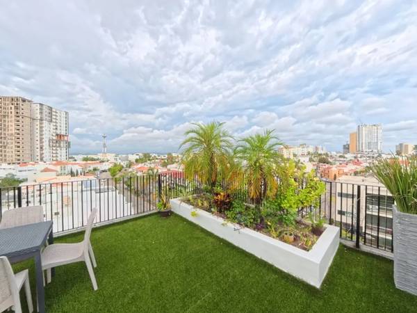 The building offers amenities designed for year-round enjoyment: a rooftop pool with ocean views, barbecue grills, a gym, a reading area, 24/7 security, a closed-circuit television system, and covered parking.