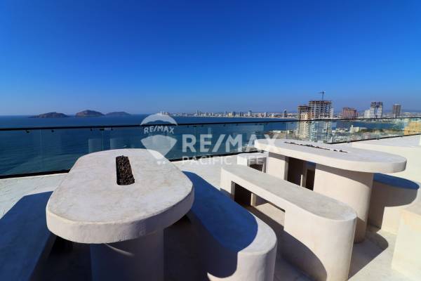 Experience the best views in Mazatlán from this stunning condo located in the exclusive Sunset Hills development on the iconic Cerro de la Nevería. Enjoy an incredible ocean view and take in the beauty of Paseo Claussen right from your private terrace—perfect for unforgettable sunsets.