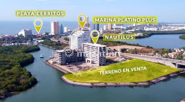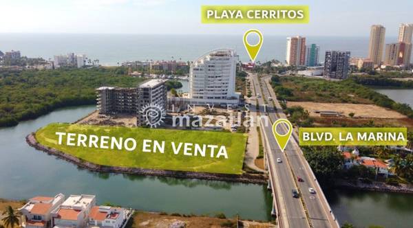 Opportunity for developers! This 2.85-acre (124,420 ft²) lot offers 709 ft of marina frontage and 266 ft along Marina Avenue, located just steps from the prestigious Cerritos Beach in Mazatlan.